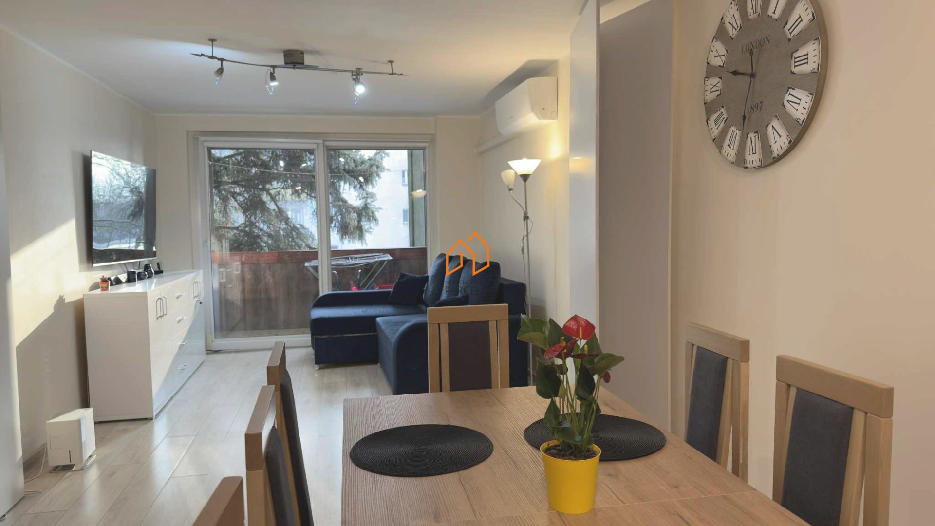 - salon z wyjściem na balkon i klimatyzacją